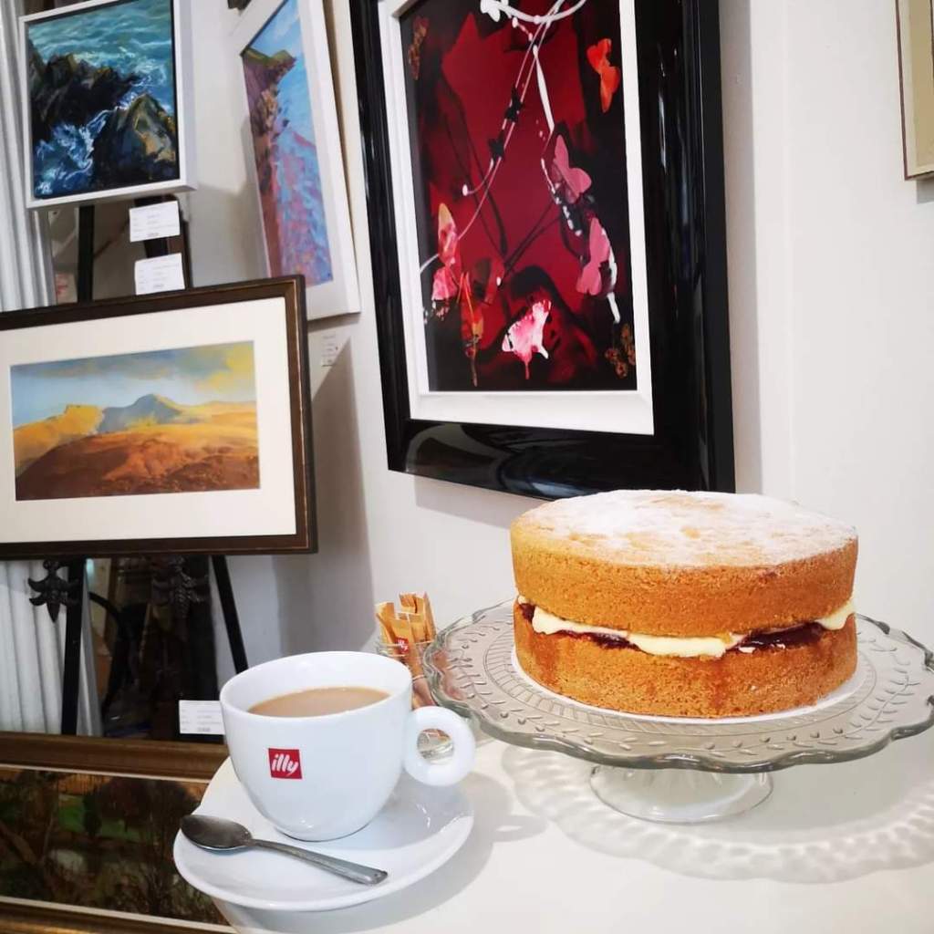 We have a coffee shop at Ardent Gallery, serving illy coffee and homemade cakes by local cake maker Mairwen Price. We have both ground floor and middle floor seating, a comfy sofa if you want to relax with a hot drink and a few window seats if you want to watch the world go by. You are also welcome to grab a drink and browse our two floors of gallery whilst you enjoy it, or if you don’t have time to stay, we do takeaway!